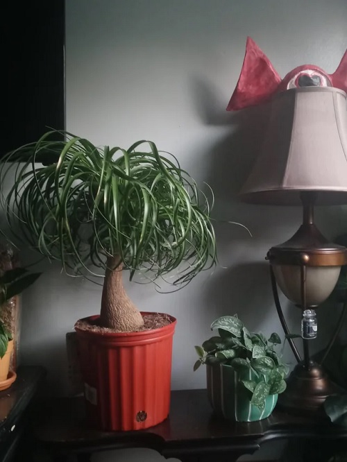 Water your ponytail palm deeply but in appropriate gaps. Let the soil dry out between watering and water even less in winter.