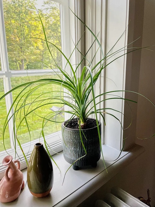 Coming from the deserts, the ponytail palm thrives in bright, direct sunlight. Place it in a sunny window, preferably south-facing. You can also take it outside in warmer months for an extra boost.