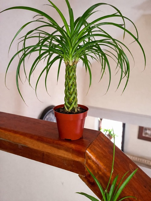 Active integration: Check the center part of the braided leaves every 2-4 weeks. If you find any new leaf growing more than 3-5 inches, guide it into the path of the nearest braid strand. You can tie the leaves with a thin thread until they turn into a thick trunk over time.