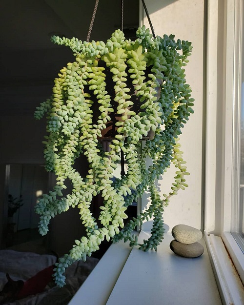 Hanging planters are visually pleasing, however, if you put trailing succulents at a very high place, you will not be able to water them properly or maintain them. Which means they will be underwatered, infested with pests, and eventually will rot.