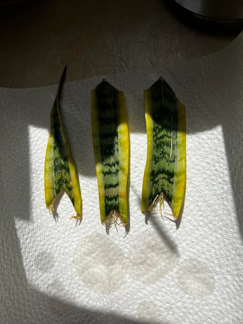 If you’re propagating a variegated snake plant, leaf cuttings will almost always lose their yellow or white stripes and revert to solid green. Does that mean it’s a failure? No. Many people think it is, but hear us out. If you want to preserve variegation, propagate using division, not leaf cuttings.