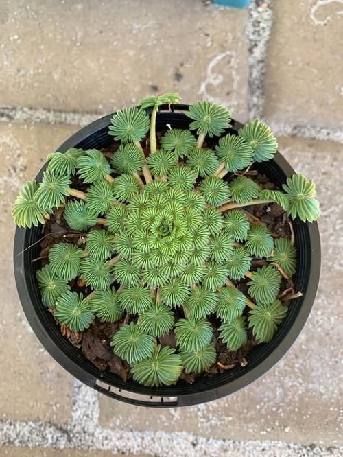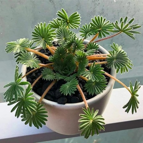 The name comes from its leaves, which are like tiny, symmetrical tendrils flowing from the top of each stem, resembling a small cluster of miniature palm trees.