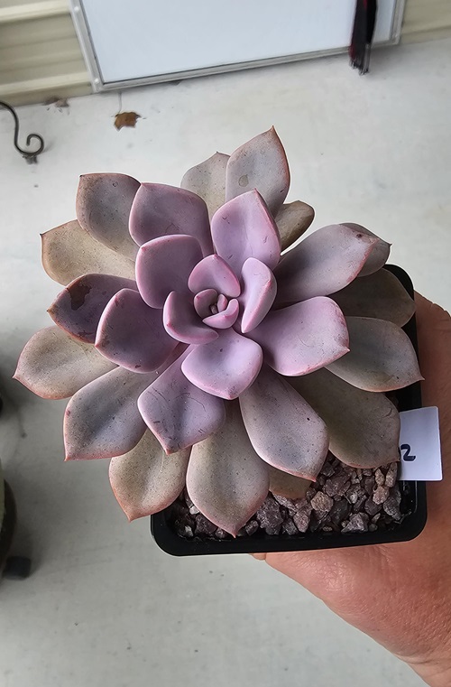 A nice purple Echeveria is what it is! The Purple Pearl Echeveria showcases a large rosette of deep purple to coral pink foliage with slightly pointed tips at the end. It can grow up to 8 inches in diameter.