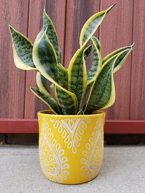 The Laurentii is a household favorite! It is a classy variety of tall snake plant with yellow leaf margins. It can develop flowing spirals when trained or when grown under uneven lighting conditions. You’ll need a bit of space to showcase this beauty as it can reach up to 6 feet in optimal conditions.