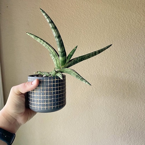 This snake plant is so humble that it just accepts the form you wish to see it in! If you train it into becoming a perfect spiral, over a period of time, the leaves adapt that form. They have cylindrical leaves and come in a braided form, a dream for people who love edgy species!