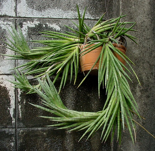 This plant has wavy and thick leaves that often curve outward. This gives the plant a natural spiral effect, and it is suited to large planters.
