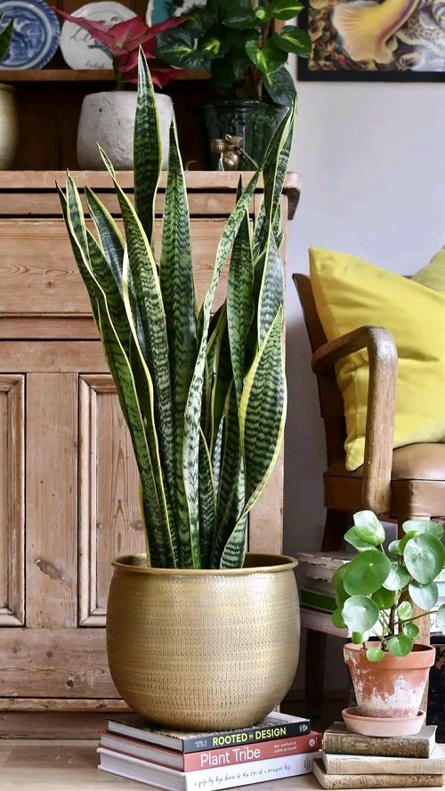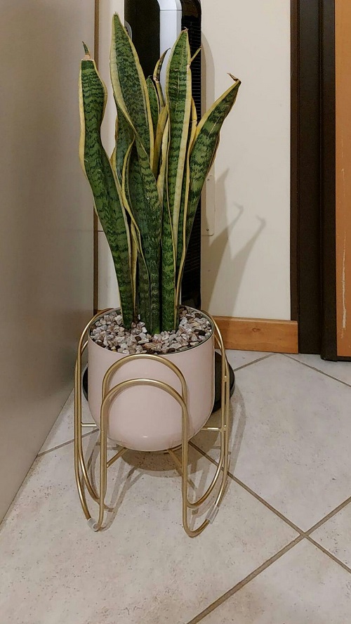 This hack is simple and effective! You don’t have to do much; simply place your snake plant pot on an angled platform away from the corner (which can be created by a leaning book), and the plant will not press against the walls again!