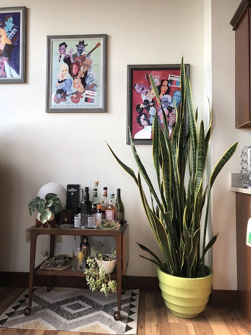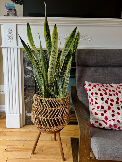 When you don’t get space, you have to make it! In a cramped corner, use a specifically designed plant stand, stool, or any other apparatus that places your snake plant on a pedestal, creating more space. You won’t have to cut off any leaves and you’ll also put visual emphasis on your plant!