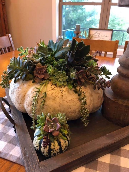 No, it is not Halloween, but who said we cannot reuse pumpkins? We can, and this is exactly how you should use it. But make sure to have enough space for your succulents to breathe inside it.