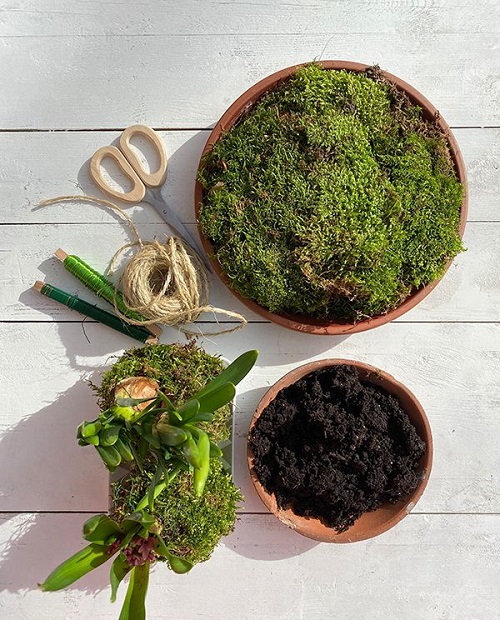 Fill the 7 cm frame with this creative soil to create the illusion of a brown planet. You can also purchase a moss sphere from your local nursery, selecting the desired size.