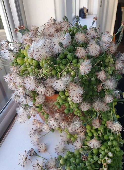 A famous trailing plant for hanging baskets or shelves is native to South Africa and blooms in white with cinnamon or clove scent. They typically bloom in late winter to summer, when they are given proper light and watered when the soil is dry between watering to encourage dormancy.
