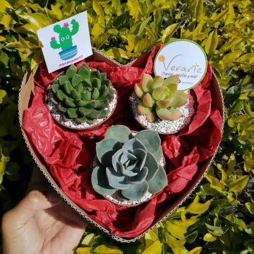 A heart box filled with succulents and cacti is the perfect gift for your loved one. Fill the heart box with some tiny succulents and cacti on a red crumpled sheet. Spray some perfume on the crumpled sheet so that it radiates your essence, conveying love and safety when you gift it to them.