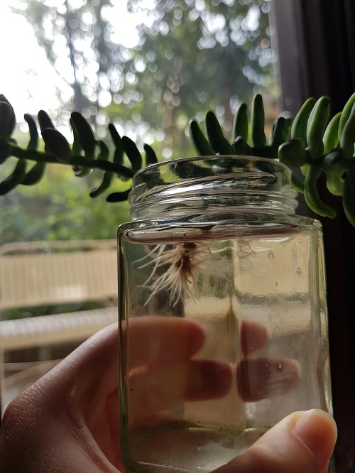 Place the jar in bright, indirect light and change the water every few days to prevent bacteria. When the roots grow about an inch long, move the cuttings to soil. This method works best in warm, slightly humid weather.