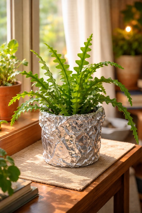 Certain pests, like fungus gnats or insects, hate reflective surfaces. Wrapping aluminum foil around the soil surface or pot can help prevent pests from laying eggs or reaching the plant. While it won’t eliminate infestations, prevention is always better than cure.